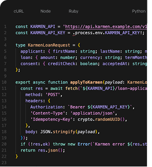 Allant d'une simple landing page co-brandée à une API complète, Karmen s'adapte à vos process et ressources